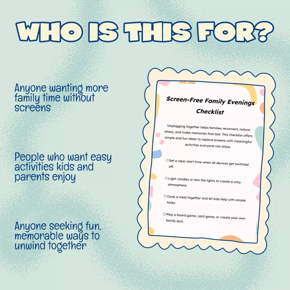 Screen-Free Family Evenings Checklist | Digital Download | Printable Guide for Parents, Kids & Families | Fun Screen-Free Activities, eBook & Family Connection Tool